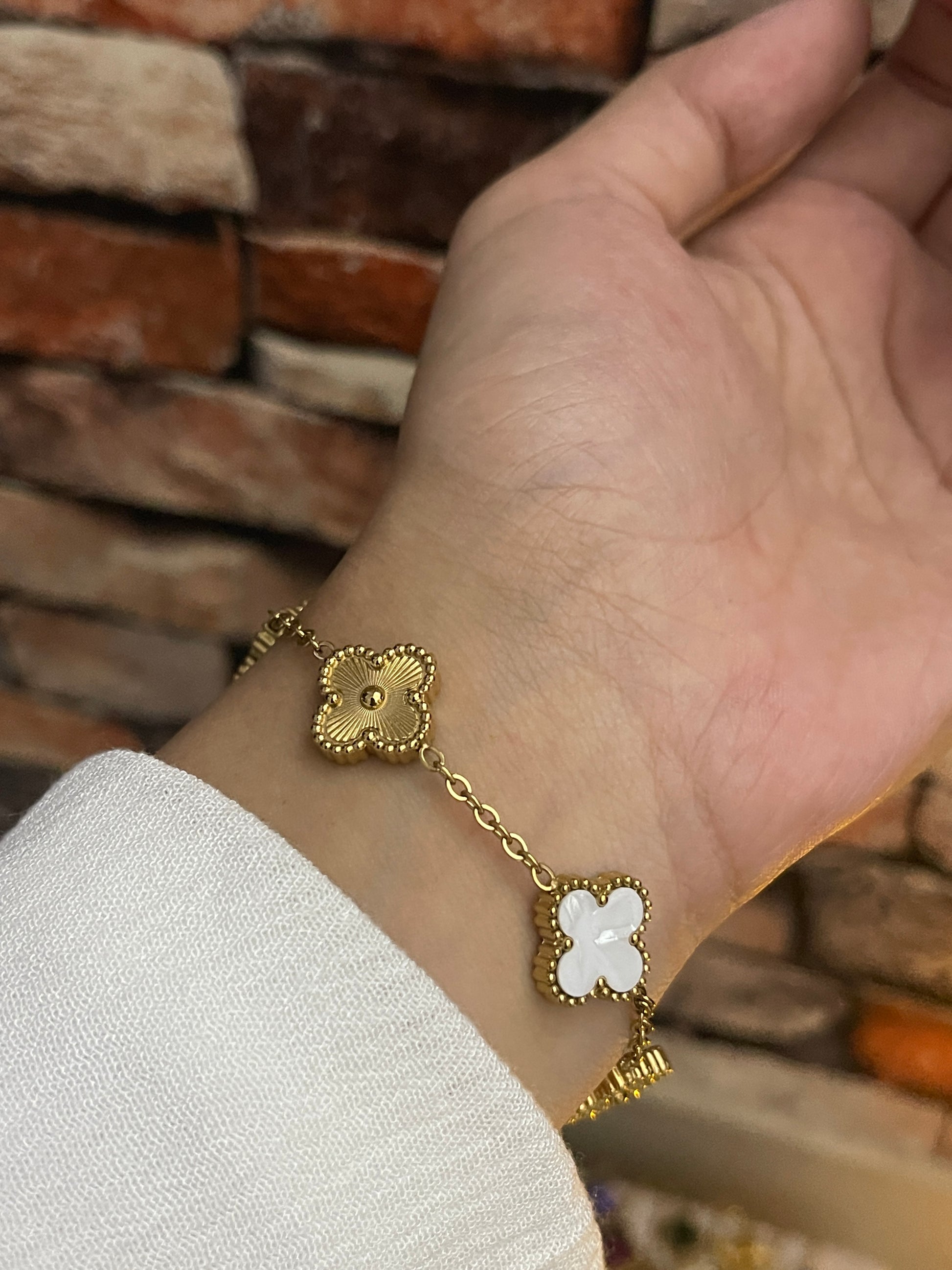 White & Gold Clover Bracelet